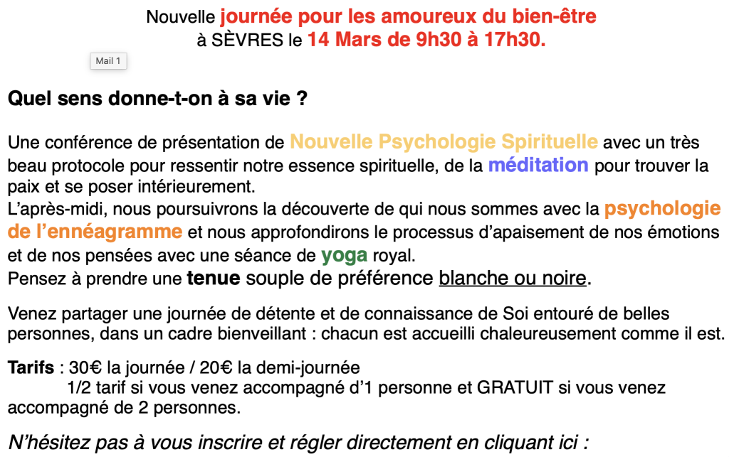 Journée bien-être à Sèvres le samedi 14 Mars 2026
